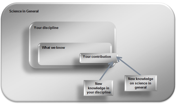 The introduction you are about to write embeds your contribution in what we know, with details of what you know in your discipline and it embeds your discipline in science in general. This is confirmed by the references to papers by other laboratories, papers by other members of the laboratory you are working in and papers decscribing your own work. You tell the rest of the world where your contribution fits into the general framework of your discipline and that of science in general.